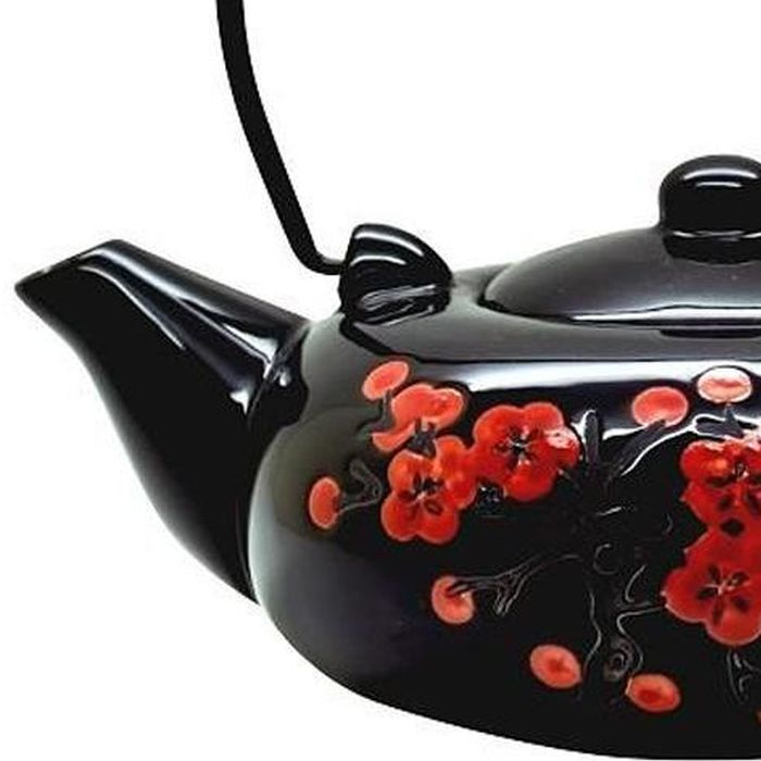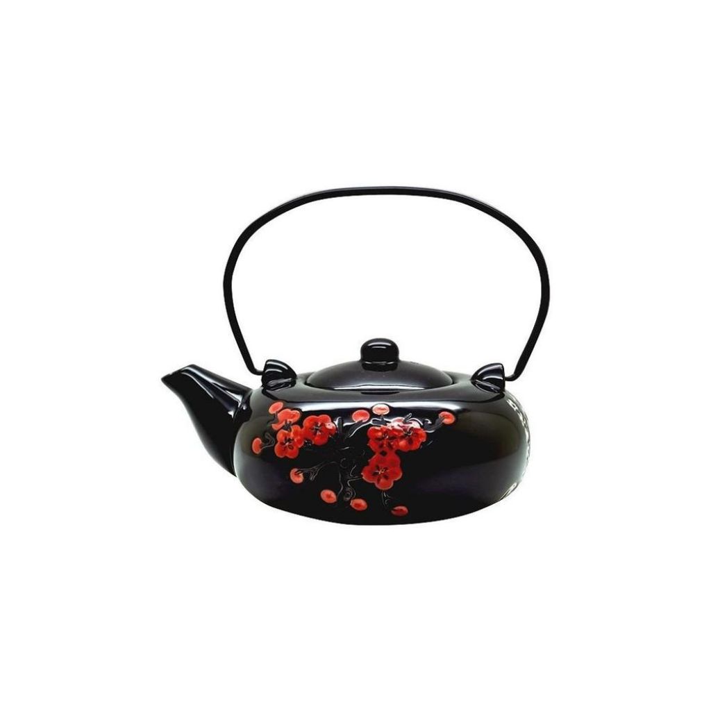 ΤΣΑΓΙΕΡΑ ΚΕΡΑΜΙΚΗ με Φίλτρο 600ml ΜΑΥΡΗ με ΚΟΚΚΙΝΑ ΑΝΘΗ 'F&B'