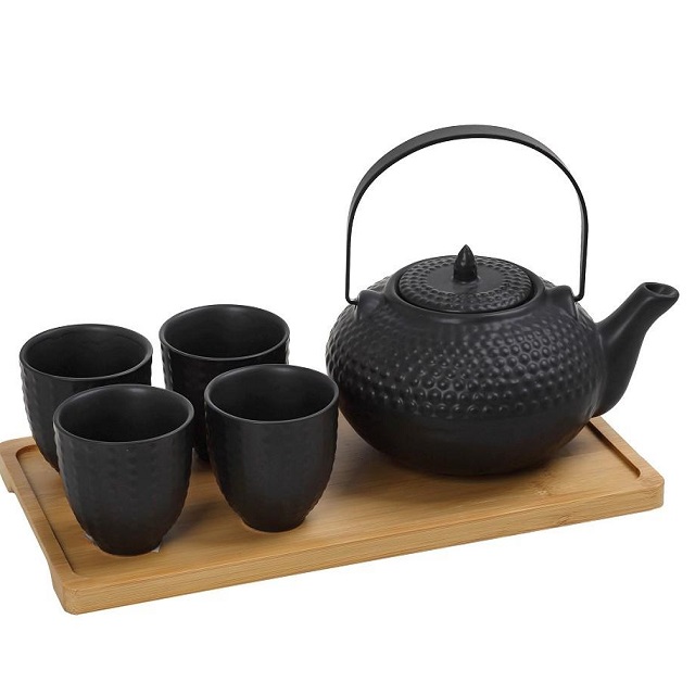 ΣΕΤ ΤΣΑΓΙΟΥ (Τσαγιέρα-4 Κούπες-Δίσκος Bamboo) ΜΑΥΡΟ 'F&B - Ritual'