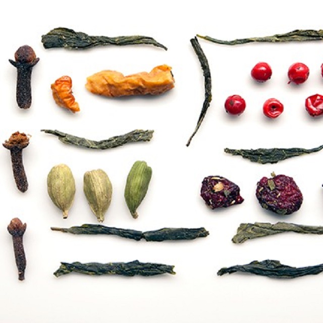 Πράσινο τσάι, κομμάτια μήλου, κομμάτια κανέλας, κορίανδρο, κατεψυγμένα κομμάτια βύσσινου, άρωμα κάρδαμο, κατεψυγμένοι κόκκοι γιαουρτιού, ροζ πιπέρι, γαρύφαλλο.