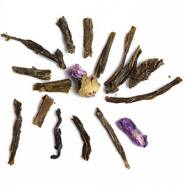 Πράσινο Τσάι, κομπούχα σε σκόνη (μαλτοδεξτρίνη, ζάχαρη, νερό), μείγμα βοτάνων (φύλλα μουριάς, σμεουριάς και φραουλιάς, λεμονόχορτο, ρίζα calamus), άνθη μολόχας.