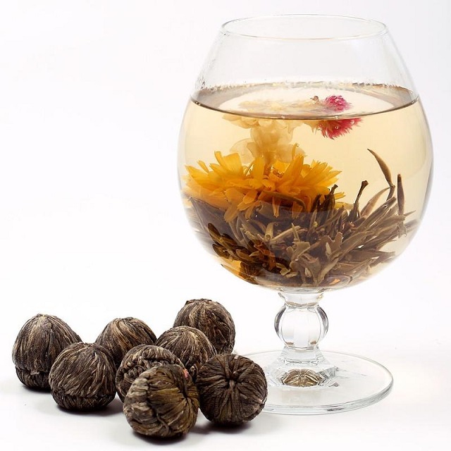 Οι Κινέζοι, εδώ και αιώνες, πλέκουν φύλλα τσαγιού, δημιουργώντας τα πιο απίθανα σχήματα που μπορούν να αριθμούν δεκάδες φύλλα τσαγιού. Μέσα σ' αυτά κρύβουν άνθη που ανοίγουν σταδιακά μέσα στο νερό. Φτιάχνονται παραδοσιακά στα απομονωμένα χωριά του βουνού Huang στο νότιο τμήμα της επαρχίας Anhui. Όταν ανοίγει το μικρό Dragon Ball, δημιουργείται ένα τόξο από άνθη γιασεμιού που περικλείει ένα κρινάκι και κορυφώνεται με ένα άνθος αμάραντου.