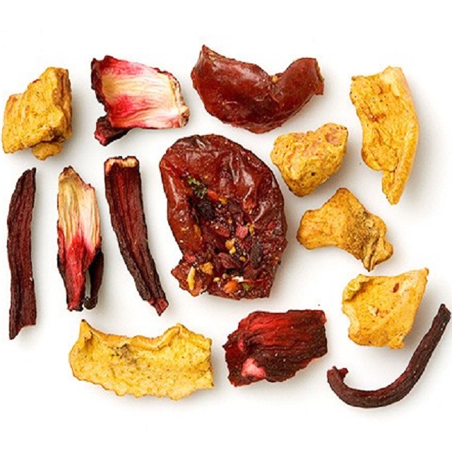 Κομμάτια μήλου, άνθη ιβίσκου, κράνμπερυ, ζάχαρη, ηλιέλαιο, άρωμα, γλυκόριζα.