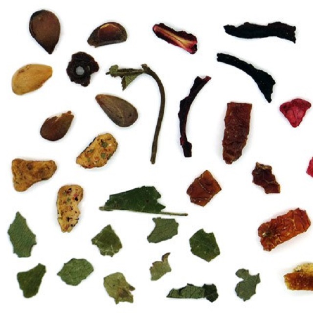 Ιβίσκος, μήλο, κυνόροδο, φύλλα μουριάς, άρωμα σμέουρου, φλούδα πορτοκαλιού, κομμάτια σμέουρου, άρωμα κόκκινων φρούτων, πούλπα μήλου, μέσο οξίνισης κιτρικό οξύ.