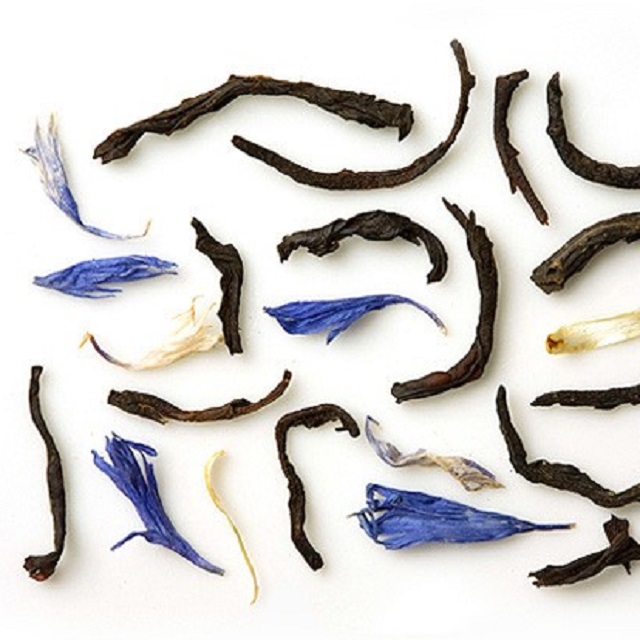 Μαύρο τσάι, άρωμα νεραντζιάς, πέταλα κυάνου, άρωμα ραβέντι-κρέμας.