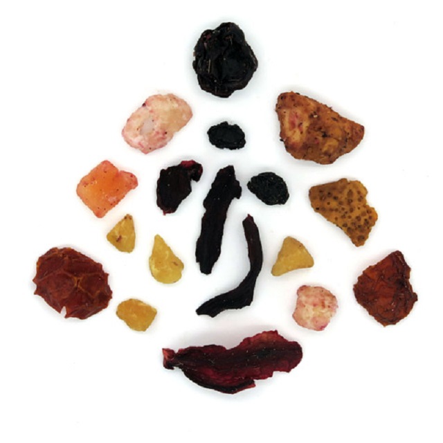 Άνθη ιβίσκου, κυνόροδο, κομμάτια μήλου, σταφύλι, άρωμα, σαμπούκο, κομμάτια αμυγδάλου, κανέλα, κομμάτια ανανά (ανανάς, ζάχαρη, μέσω όξυνσης κιτρικό οξύ), γαρύφαλλο, φλούδα εσπεριδοειδών, κομμάτια παπάγια (παπάγια, ζάχαρη, μέσω όξυνσης κιτρικό οξύ), κομμάτια μάνγκο (μάνγκο, ζάχαρη, μέσω όξυνσης κιτρικό οξύ), φραγκοστάφυλλο, μύρτιλλο.